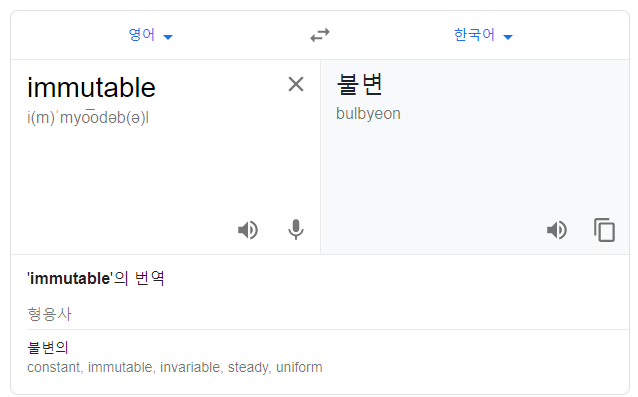 immutableํ๋ค๋๊ฒ ์ฒ์์๋ ๋ฌด์จ ์๋ฏธ์ธ์ง ์๋ฟ์ง ์์์ ์์ด ๋จ์ด๋ฅผ ์ฐพ์๋ณด์์ต๋๋ค.